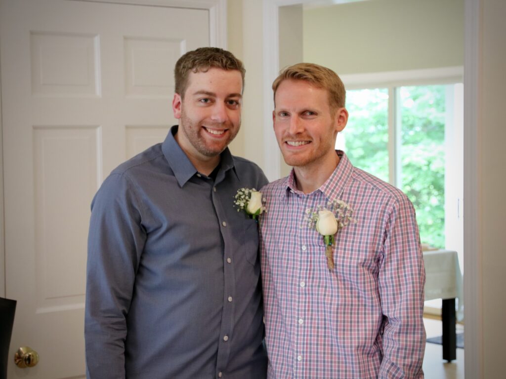 When talking about our future, it was clear to both of us that we wanted to get married and start a family. We got engaged on Christmas Day and had a small wedding ceremony at our home the following year. It was perfect! Since then, we’ve continued to be inseparable. We’ve bought (and renovated) our home, raised our dog Lilo, traveled, and watched plenty of shows, cozy on our couch – all together.